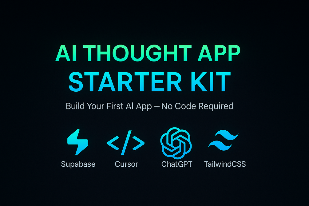 Build your first AI app - no code, no fluff. This starter kit walks you step-by-step through how I built ThoughtArchive, a voice-to-thought organizer using Cursor, Supabase, ChatGPT, and Tailwind. Perfect for indie builders, creatives, and AI-curious devs
